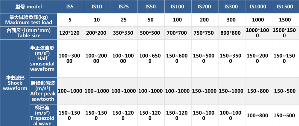 • 高加速沖擊試驗機參數表